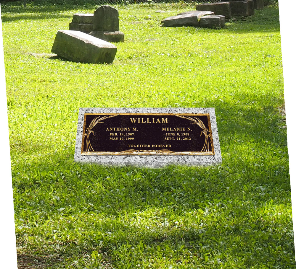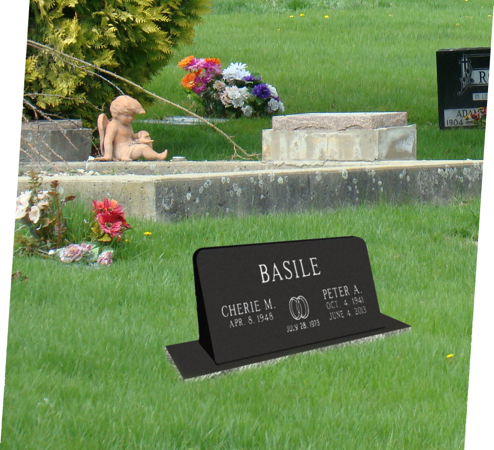 Markers are the simplest and most economical of all memorials. Flat Markers are set flat and flush to the ground. They are usually 3-4 inch thickness, rectangle in shape, polished surface with sawn sides. From Flowers, religious symbols, emblem to flags, natural scenery and portraits, we can sandblast or engrave any desired pattern or artwork reflecting lifestyles of your beloved one. Granite flat markers are also called as Grass markers, Flush markers, Gravestones, Cemetery flat markers and Flat tombstones.